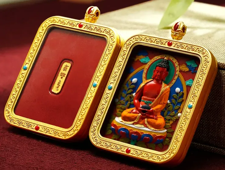 Each pendant features a meticulously hand-painted tsatsa—a traditional Tibetan Buddhist art form. These miniature reliefs depict sacred deities and symbols. The vibrant colors are not merely decorative; they represent the divine and are charged with spiritual significance. - The Sacred Gau: "Gau" translates to "small box" in Tibetan. This portable shrine or amulet is traditionally worn close to the heart. It is believed to offer physical protection and spiritual blessings, helping to purify negative energy and deepen one's meditation practice.