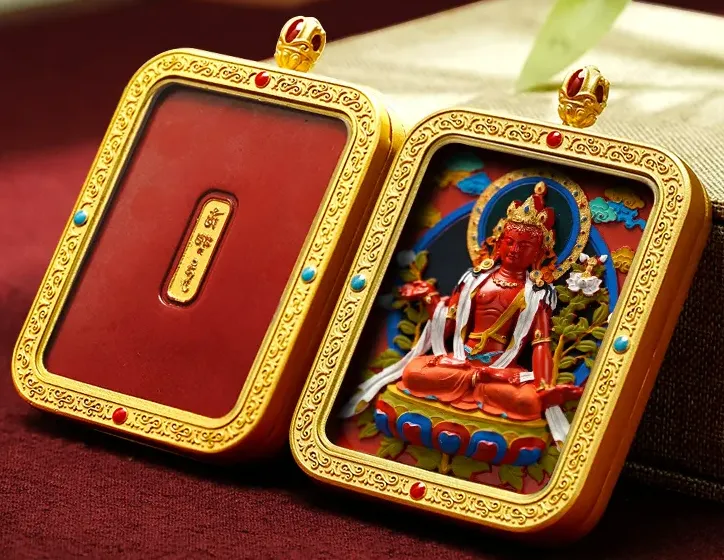 Each pendant features a meticulously hand-painted tsatsa—a traditional Tibetan Buddhist art form. These miniature reliefs depict sacred deities and symbols. The vibrant colors are not merely decorative; they represent the divine and are charged with spiritual significance. - The Sacred Gau: "Gau" translates to "small box" in Tibetan. This portable shrine or amulet is traditionally worn close to the heart. It is believed to offer physical protection and spiritual blessings, helping to purify negative energy and deepen one's meditation practice.